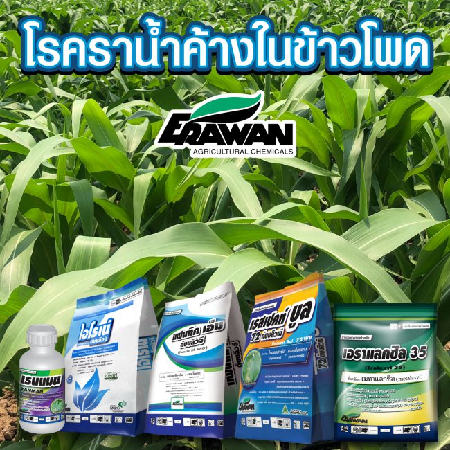 <h2 style=”text-align: center;”><span style=”color: #008000;”><strong>โรคราน้ำค้างในข้าวโพด</strong></span></h2> โรคราน้ำค้างของข้าวโพดเกิดจากราสาเหตุที่เป็นราชั้นต่ำกลุ่มราน้ำ รานี้มีสปอร์ลักษณะใส ชอบอากาศเย็น ประมาณ 22-25 องศาเซลเชียส และความชื้นสูง ข้าวโพดที่อ่อนแอต่อโรคนี้ได้แก่ข้าวโพดหวานและข้าวโพดฝักอ่อน ราสาเหตุผลิตสปอร์ได้ทั้งด้านบนใบและใต้ใบช่วงเวลาเช้า ประมาณ ตีสามถึง ตีห้าก่อนแพร่ระบาดออกไปกับละอองหมอก ไปยังต้นข้าวโพดปกติที่อายุน้อยกว่า 1 เดือน การระบาดเกิดได้ดีโดยเฉพาะการปลูกข้าวโพดในพื้นที่หุบเขาที่มีอากาศเย็น น้ำค้างแรง และมีหมอกปกคลุมในหุบเขาเป็นเวลานาน เมื่อสปอร์งอกเข้าสู่ใบพืชจะสร้างเส้นใยในผิวใบอย่างรวดเร็วไปตามความยาวของใบ จึงเห็นอาการเป็นแถบสีอ่อนสลับสีเขียวปกติของใบ หากอาการรุนแรงรอยแผลสีซีดจะมีขนาดใหญ่ใบตามแผ่นใบในกรวยใบ เมื่อราสาเหตุใช้อาหารใบใบหมด จะทำให้ใบเปลี่ยนสีเป็นสีเหลืองและสีน้ำตาล ต้นข้าวโพดไม่เจริญเติบโต ลำต้นเตี้ยแคระ ข้อไม่ขยาย ไม่ออกดอก และไม่ออกฝัก หากอาการบนใบไม่รุนแรงข้าวโพดอาจออกฝัก และจะได้ฝัก บิดเบี้ยว ไม่สมบูรณ์ ไม่ติดเมล็ด หรือติดเมล็ดเล็กน้อย เมื่อข้าวโพดได้รับเชื้อสาเหตุแล้ว ต้นที่เป็นโรคจะไม่สามารถรักษาให้เป็นปกติได้ แต่ยังสามารถผลิต ราสาเหตุเพื่อการระบาดได้ต่อไปในแปลงปลูก ราสาเหตุที่ติดมากับเมล็ดจะเข้าลาย โดยอยู่อาศัยในต้นข้าวโพดตั้งแต่เริ่มงอก จนถึงแสดงอาการใบสีซีด ใช้เวลาประมาณ 10 – 14 วัน สปอร์ที่ผลิตขึ้นจะแพร่ระบาดไปยังข้าวโพดที่อายุต่ำกว่า 1 เดือน ถึง…