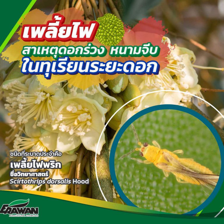 เพลี้ยไฟสาเหตุดอกร่วง หนามจีบในทุเรียนระยะดอก