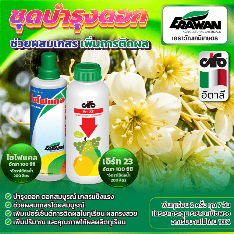 เอราจิ๊บ 10 แก้ปัญหาดอกกุดสั้น ระยะดอกเหยีดตีนหนู ของทุเรียนทำสารแพคโคลบิวทราโซล